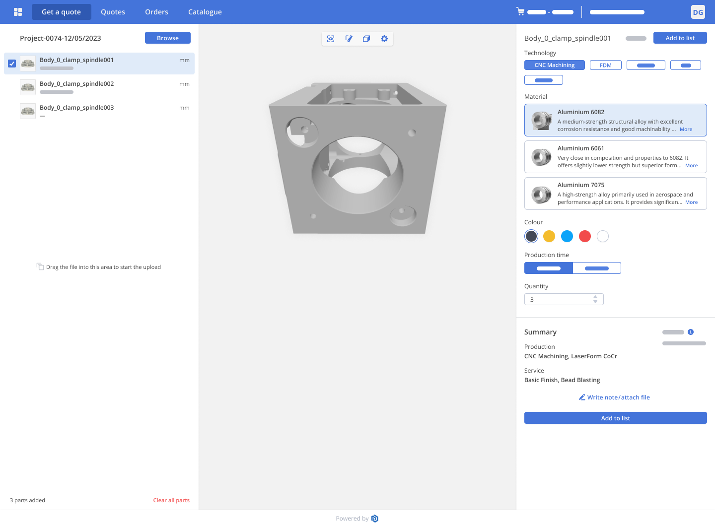Provide your customers with instant quotes, whenever they need them. AMFG’s instant quoting portal can be seamlessly integrated into your website, and works automatically. Tailored to your shop's capabilities and costing logic, all your customers need to do is upload a CAD file and select their parameters, and they’ll get an instant quote without any human input needed.