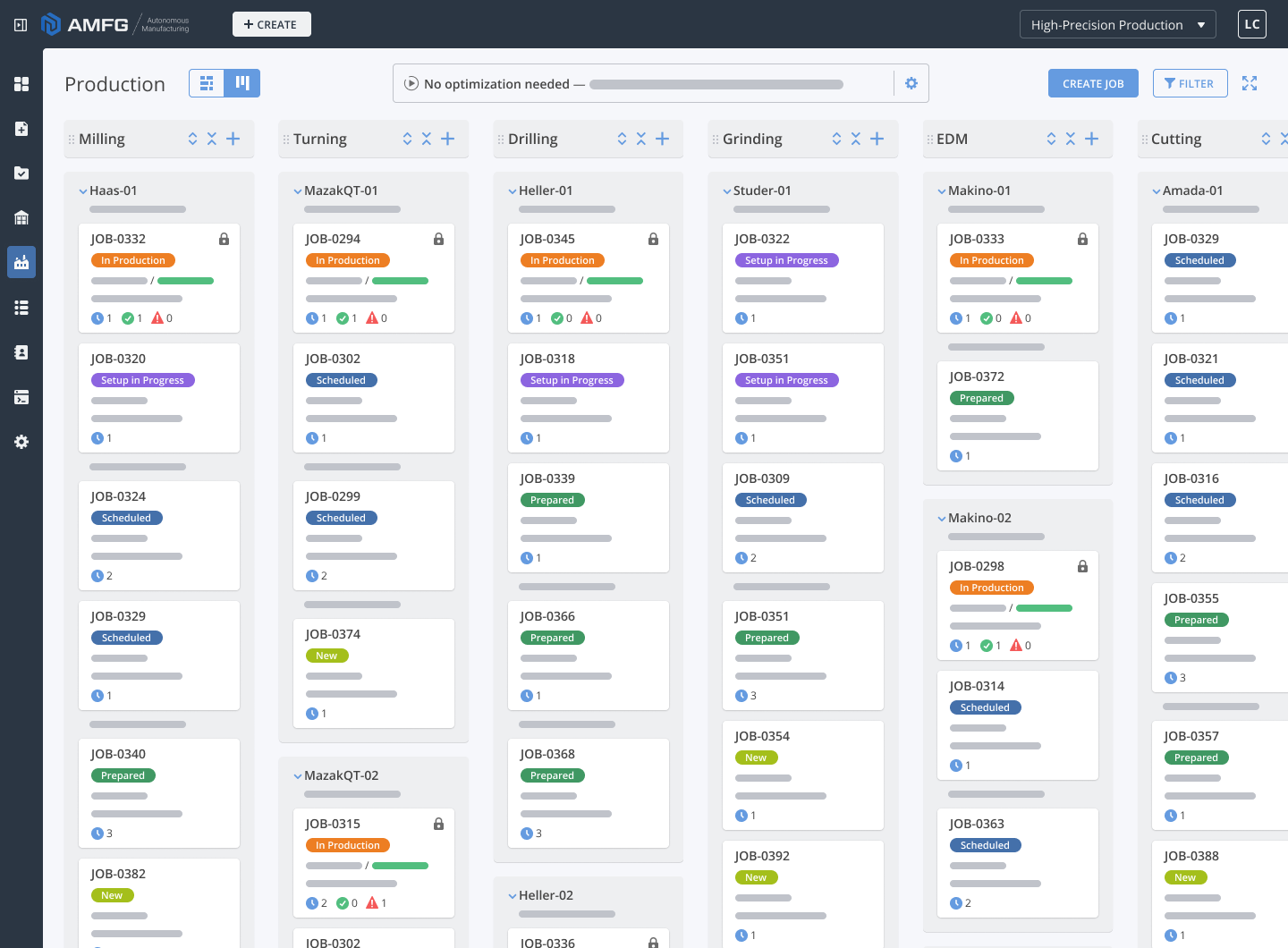 Made with manufacturers in mind, AMFG allows you to dynamically schedule jobs in a Kanban or Gantt mode, so you can have the best of both worlds.