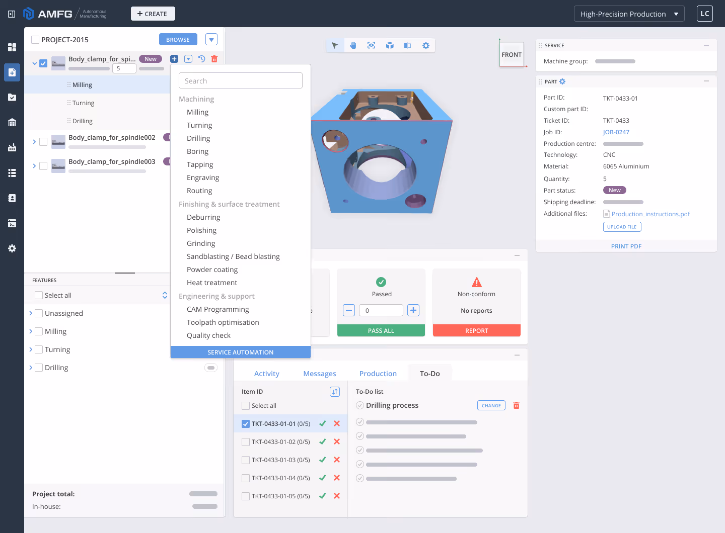 Quickly hand the shop floor all the information they need, without wasting a second.AMFG automatically generates a work plan that includes listing operations, required tooling, and tolerancing information, with complete accuracy every time.